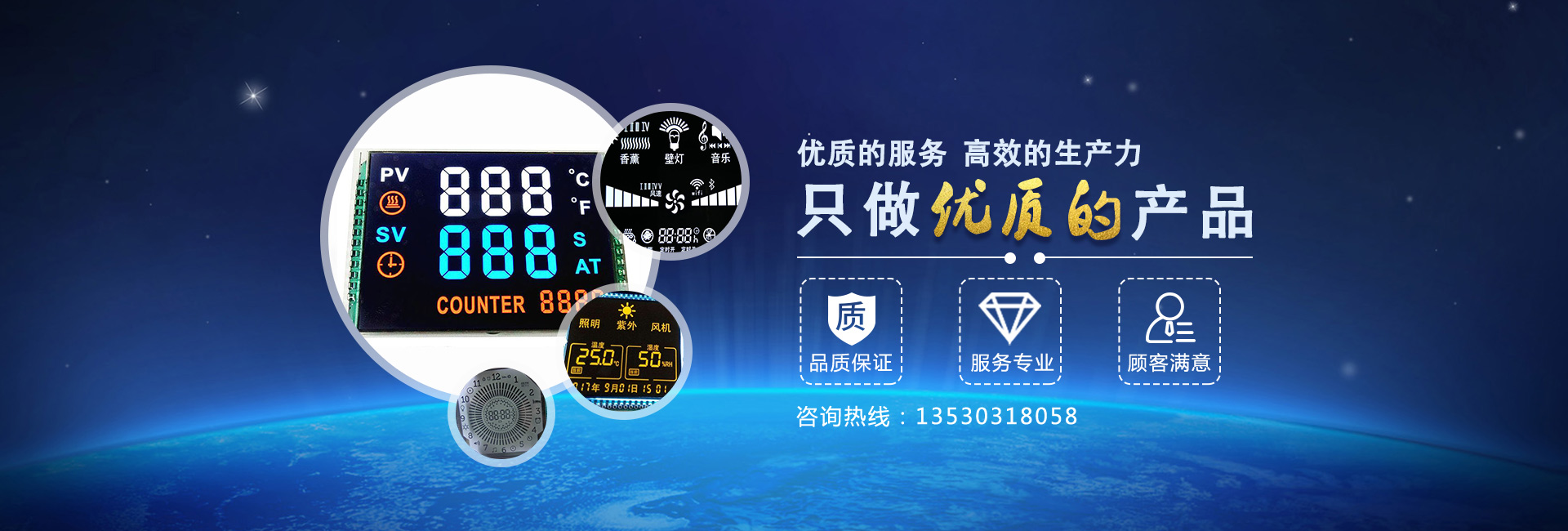 集研發、生產、銷售于一體,擁有先進的成套生產機器及測試設備,可為客戶提供各類字符型、中文字庫、圖形點陣、TFT、COG液晶模塊等上千種顯示屏,并提供個性化的定制解決方案。